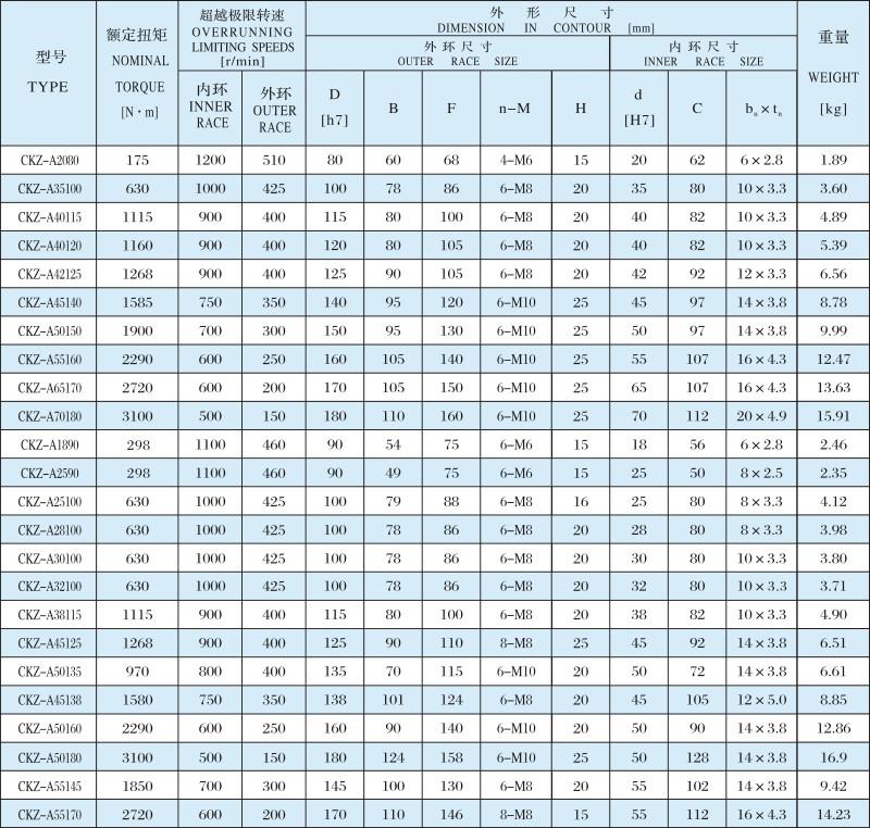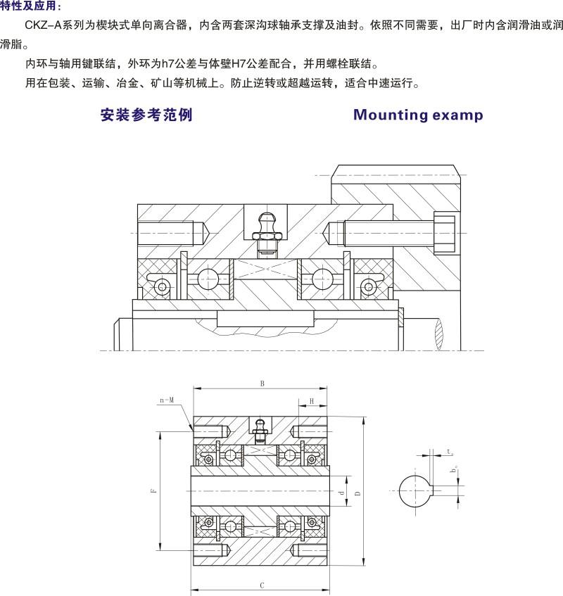 CKZ-A 超越離合器,內(nèi)含兩套深溝球軸承支撐及油封。依照不同需要,出廠時內(nèi)含潤滑油或潤滑脂。